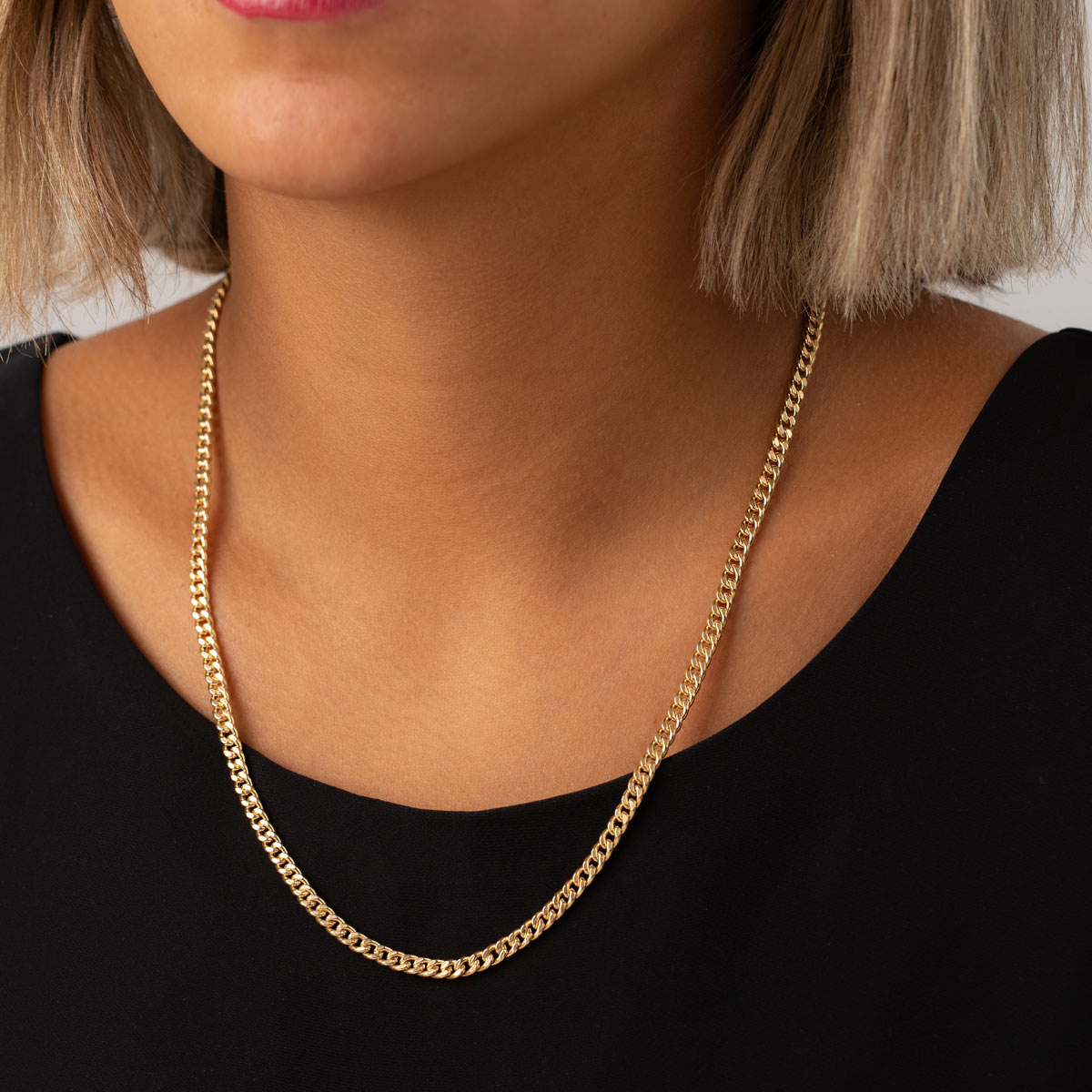 گردنبند زنانه زنجیری: این نوع گردنبندها شامل یک زنجیر ساده می شوند که در ابعاد مختلف ساخته می شوند. معمولا خرید گردنبند زنانه زنجیری از جنس طلا بیشتر طرفدار دارد اما برای ساخت این نوع گردنبند از نقره و یا آبکاری طلا و پلاتین نیز استفاده می شود.